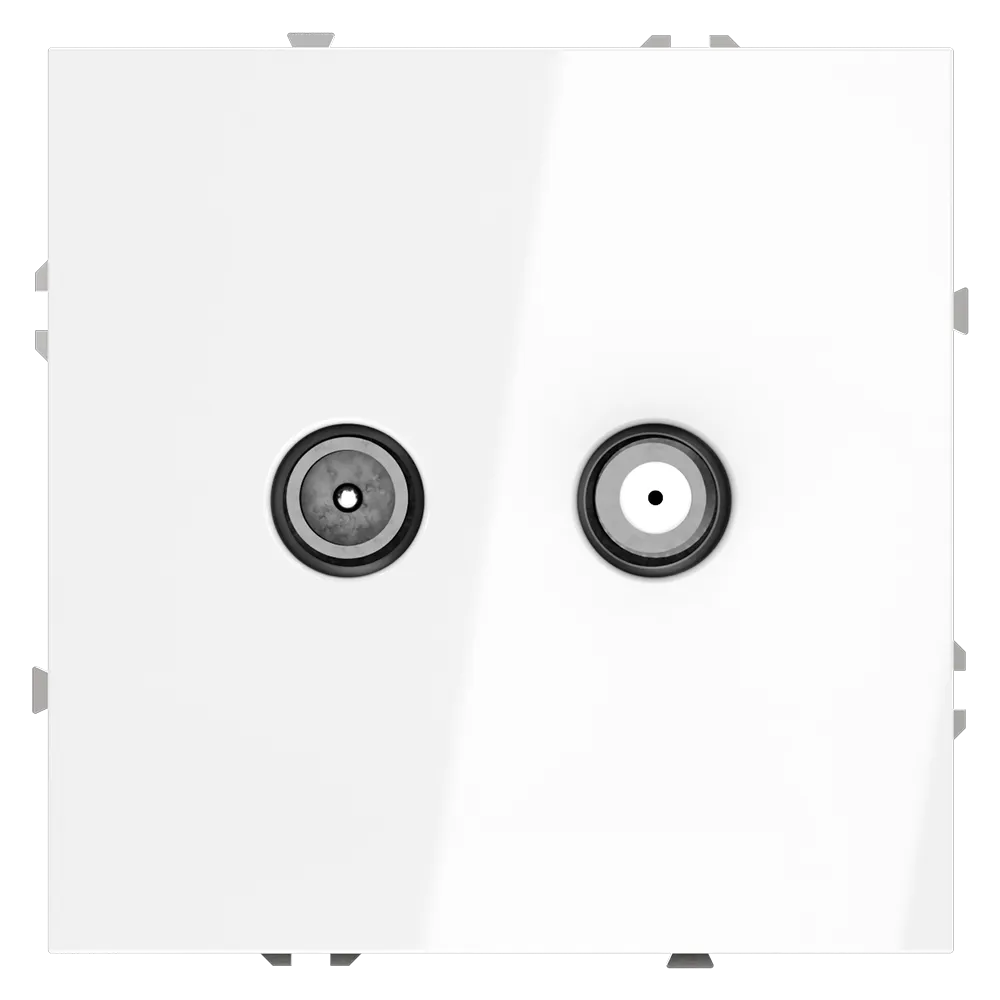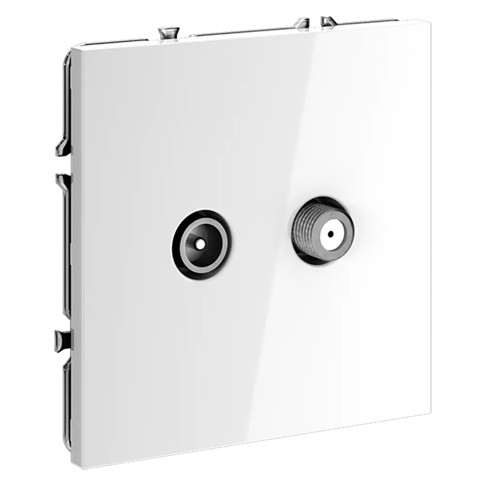 Розетка выполнена по оконечной схеме, что обеспечивает корректную передачу сигнала в системах коллективного телевидения и предотвращает помехи и отражения. Благодаря двум разъёмам в одном корпусе вы можете подключить как эфирное/кабельное ТВ, так и спутниковый ресивер — всё в одном компактном устройстве.