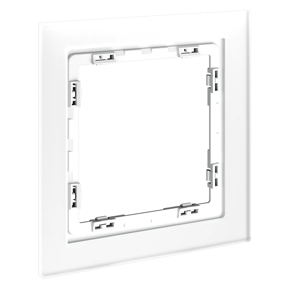 Обеспечивает быстрое и легкое соединение механизма с рамкой. Восемь фиксаторов по периметру нивелируют неровности стены и надежно удерживают конструкцию.